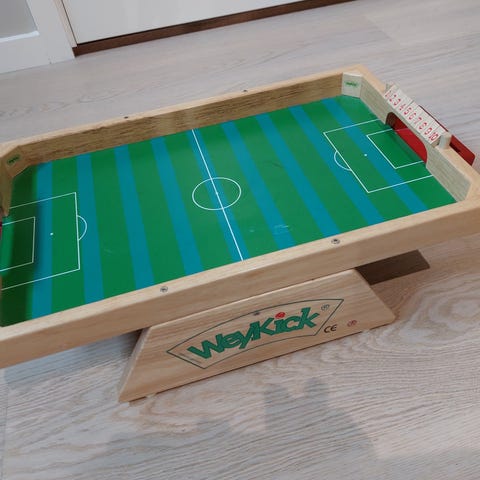Fotballspill med 3 baller selges til nestemann for mange gode stunder. Den egne jernstangen er litt bøyd så ikke full bevegelse. I følge eier (10 år) har det ikke så mye å si.