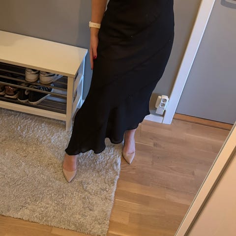 Selger en hvit kort kjole fra B.Young i str S. Den har flott dekor i front, og lekker struktur over hele kjolen. Underkjolen har plissé nederst. Det er omtrent ingen bruksmerker, men den ble dessverre litt krøllete under flytting. Se bilder for nærmere detaljer.