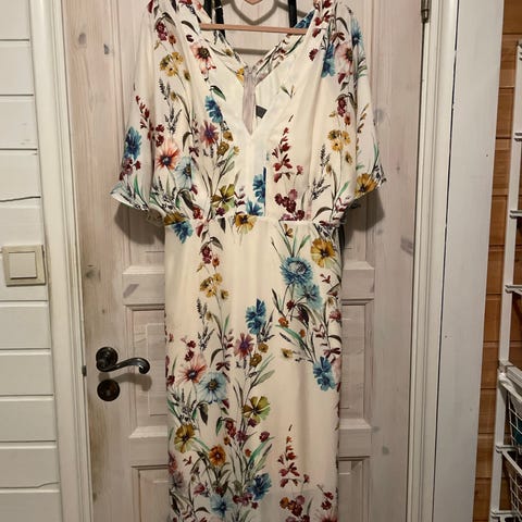 Ny kjole fra Oasis. Lappen henger på. Behagelig stretch . Str XL. Skjørtet er lukket. Farge mørk rød. flatterende puff aktige armer. Fullpris 899,- selges for 450