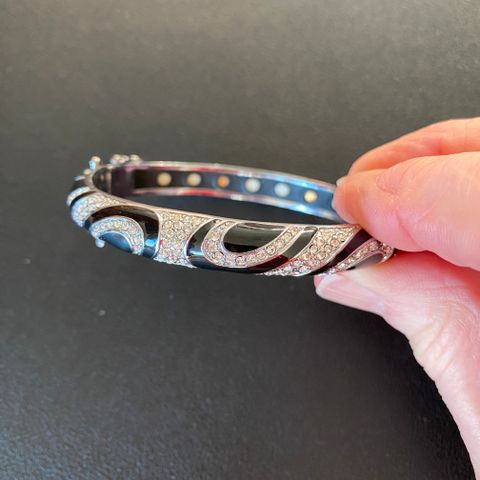 armbånd mønstret tidløs sølvfarget sort hvit kremhvit steiner gave