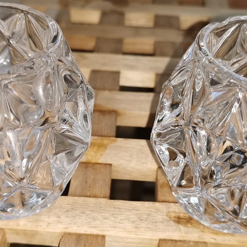 To stk kombinert lysestaker/blomstervaser i sotfarget glass