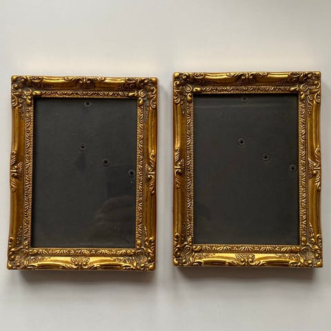 Selger gamle rammer i treverk med konveks glass. Kjøpt på en gårdsauksjon for mange år siden. De er i fin stand for sin alder, se bilder. 59x38 cm. Jeg har en ramme til i samme utforming uten glass til salgs, se mine annonser.