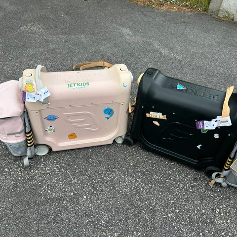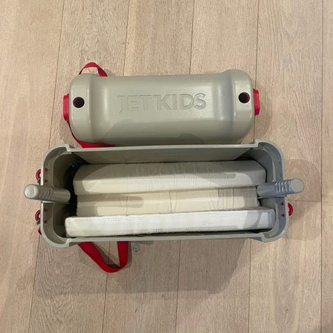 Denne kan du dra ungen med rundt på flyplassen og gjøre om til seng med den medfølgende madrassen når dere kommer på flyet. Passer for barn opp til 7 år.