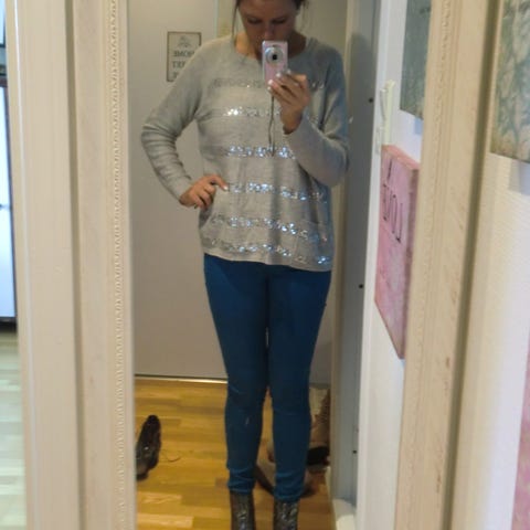I mønsteret er det noen blanke paljetter som gir et lite skimmer.
