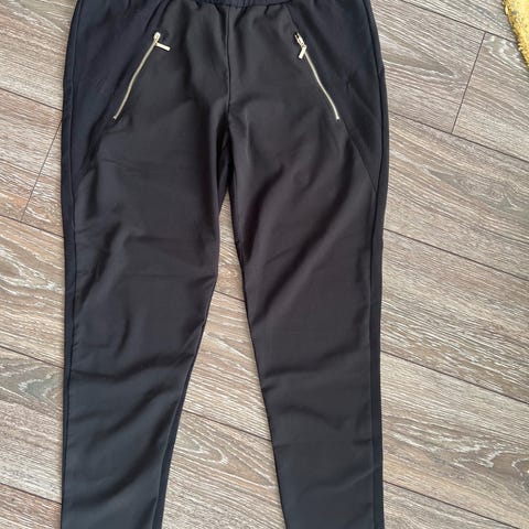 Behagelig bukse i stretch. Buksen er sort, ikke grå som det kan se ut på noen bilder. Det står str S i buksa, men jeg mener at den passer bedre til en som bruker L.