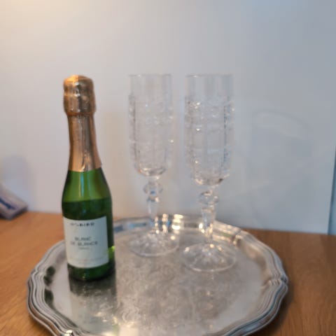 Retro skål i klart glass med inndeling. Delt inn i tre rom. Fra 60/70-tallet. Den har to små avgåtte skår på kanten. Umulig å se hvis man ikke undersøker den. Ellers hel og pen. Diameter: 18 cm. Høyde: 3,5 cm.