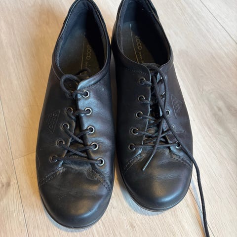 Pent brukte svarte Ecco sko i skinn i str. 36 selges.