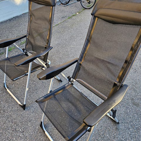 Campingmøbler selges, fortrinnsvis samlet. Fremdeles nye. Kjøpte de til avslutningen i barnehagen, så bordet og de to stolene er brukt 1 gang. Den siste stolen har ikke vært ute av trekket.