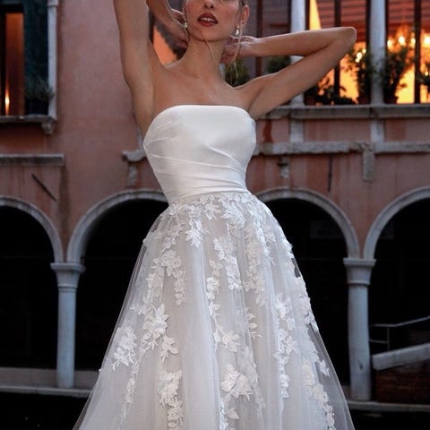 Skjørtet består av flere lag, med sateng ytterst for en blank og klassisk overflate.