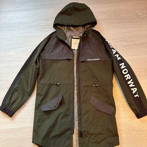 1. Kamuflasje- vind jakke str. S, to lommer med glidelås og hette. Ingen merker eller slitasje.