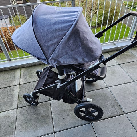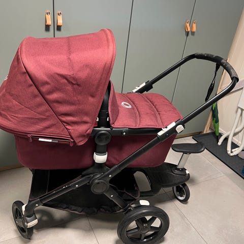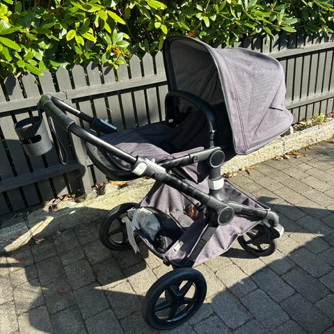 Følger med regntrekk, muffer til vinteren, bilstoladapter og koppholder.