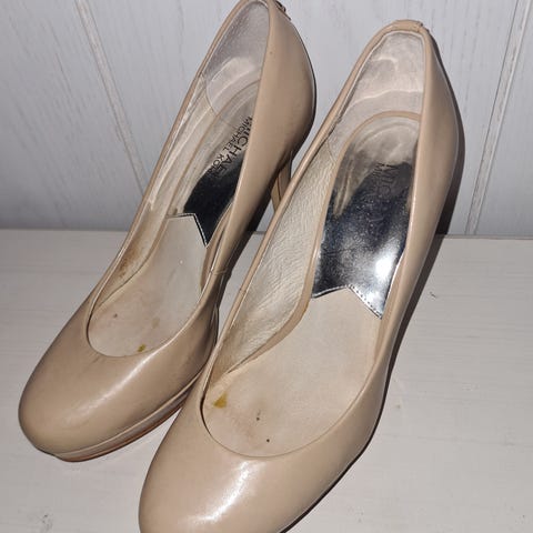 Nydelige pent brukte klassiske komfortable vintage pumps i Rødt skinn og lærsåle.