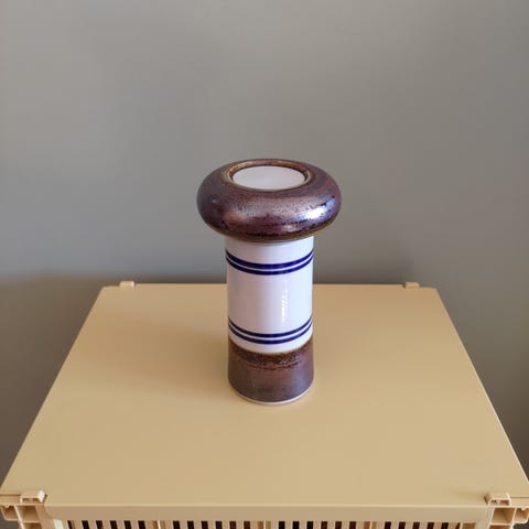 Håndlaget telysestake i keramikk. Lysestaken er produsert av Römhild keramikk, Øst-Tyskland