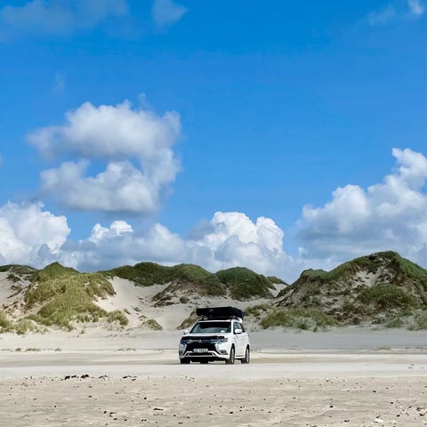 Er i utgangspunktet ment for vans, men funket fint på camping med vår Tesla. Dette er et universaltelt som fungerer slik at du kan velge å knytte sammen bil og telt - eller få ly og sove med åpen bakluke. Camp mode fungerer utmerket.