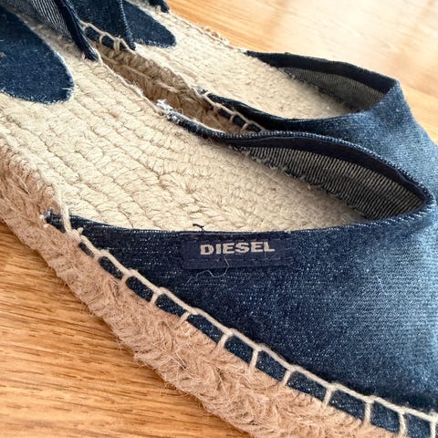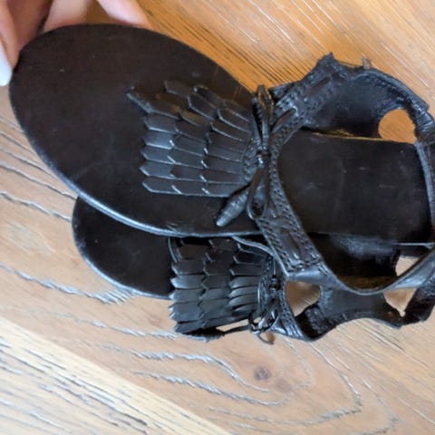 Helt nye Diesel sandaler str 40. Innersåle 26,3cm. Kjøpt for mange år siden, men kun ligget i skapet. (Obs: smale rundt ankelen) Ganske unike! Ikke sett noen som har maken. Flott skinnkvalitet. Nude farge. Litt vanskelig å få frem fargen på bildene. Selges for 600,- De kostet 2000,- mener jeg å huske!