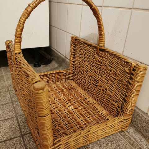Meget pent brukt rund kurv m/lokk selges. Den har vært brukt til å oppbevare håndarbeid i.