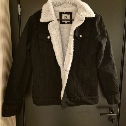 Foret denimjakke, godt brukt, men solid og uten skader.