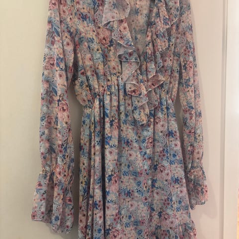 Blå blomstrete Nelly Nly trend kjole i str 40, knytes i livet