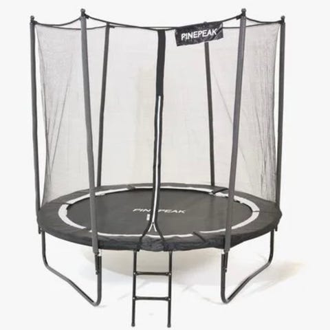 Rammehøyden på trampolinen er 76 cm, slik at du kan klatre komfortabelt opp. For å lette monteringen får du en fjærkompressor og en inngangsstige. Dette gjør trampolinen spesielt barnevennlig.