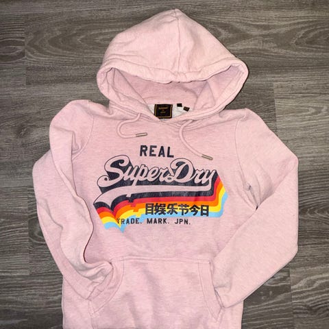 Nydelig genser fra Superdry i fantastisk tyggegummirosa farge. Lite brukt, varm og god.