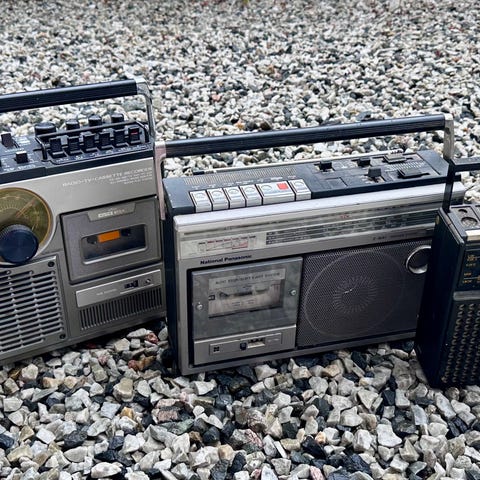 Testet og det er lyd i høyttaler, men skurrer ved volumjustering. Ingen batterilekkasje. Tuppen av antenne er av og "klikk-festet" for antennen knekt.