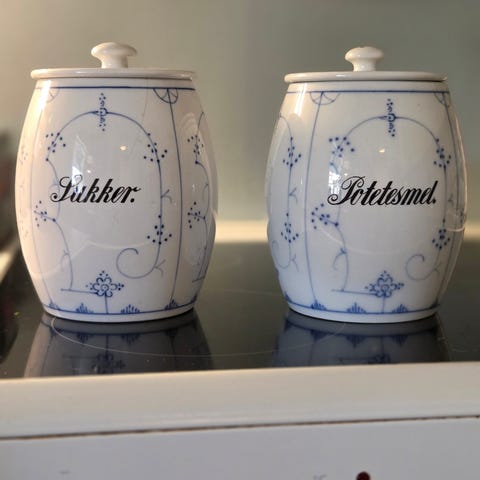 4 spiserikrukker fra Villeroy & Boch. Hele og fine, nesten uten krakelering. Spesielt fine til å være så gamle.