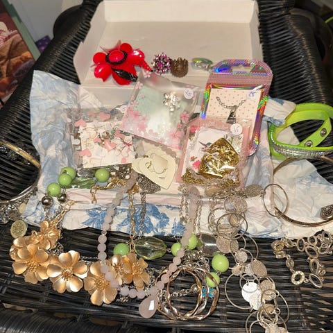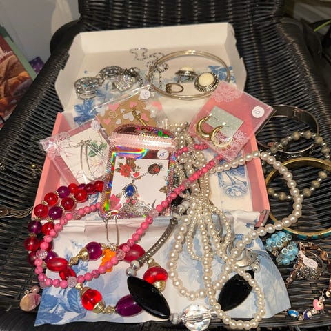 Dette er smykker, armbånd og brosjer fra dødsbo.