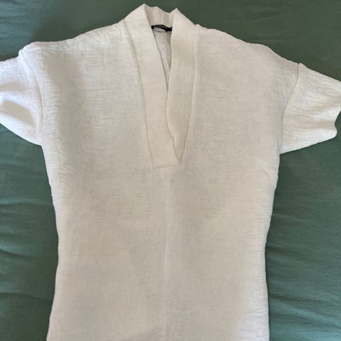 Tiger hvit bluse selges for 200. Den er brukt en gang og har ingen merker. Pen fold på ryggen og 3/4 arm.