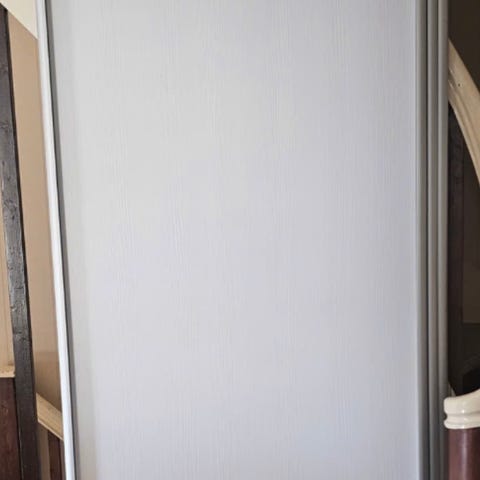 Heilt nye Langlo garderobeskapsdører med skinnegang (2 stk) til sals (ikkje brukt).