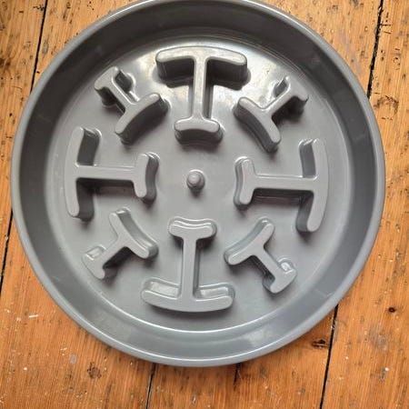 Matskål til hund. Gjør at hunden spiser treigere.