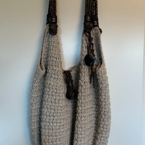 Heklede skuldervesker med fór, glidelås og glidelåslomme i fóret.