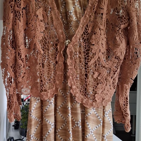 Kjolen er i strl 6, men vil si den passer en 36/38. Kan hentes på Kolsås eller sendes via forskuddsbetaling på Vipps. Kjøper betaler porto. Nypris fra kr 5499. Har noen løse tråder derav pris.