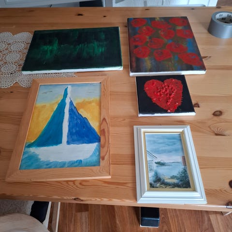 Håndmalt oljemaleri i ramme. Helt nytt og ubrukt. 12x9 cm. Julegave?