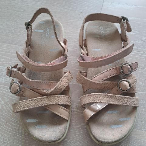 Pent brukte Ecco-sandaler til jente. Har myk og behagelig strikk over vristen, og justering med borrelås ved hælen. Størrelse 32.