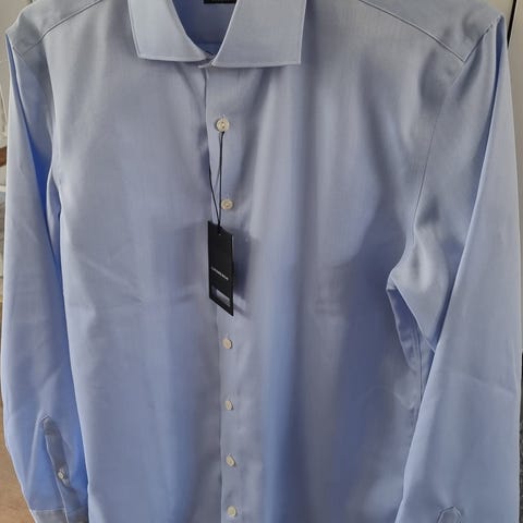 Pen skjorte str 14 år. Sort med rødrutete detaljer på krave, mansjetter og ved knapphull. Se bilder.