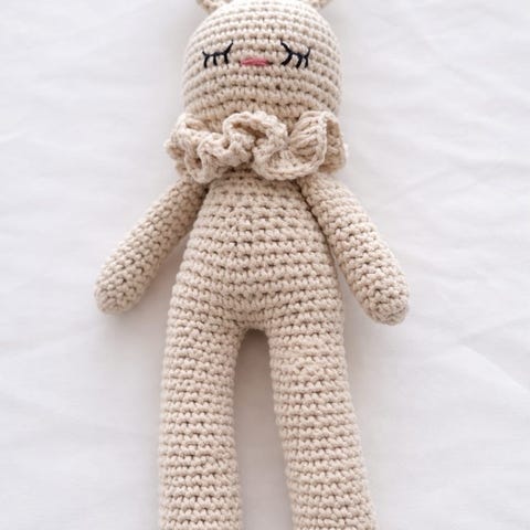 Helt nye og heklet i bomull. Høyde 12 cm (uten ben). Fine både som hyllepynt og til lek (blant annet solgt til flere tannlegekontor).