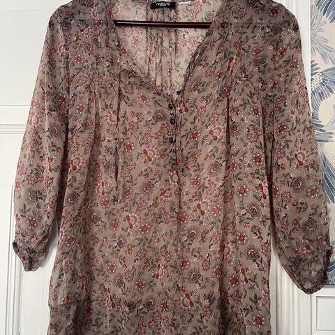 Fin blomstret chiffonbluse str 44. Pris er med porto for sending. Vasket, men ikke brukt