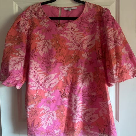 Fin knallrosa romslig topp i viscose str 44 fra London. Pris er med porto for sending. Kun vanlig post, ingen henting, ingen bud.