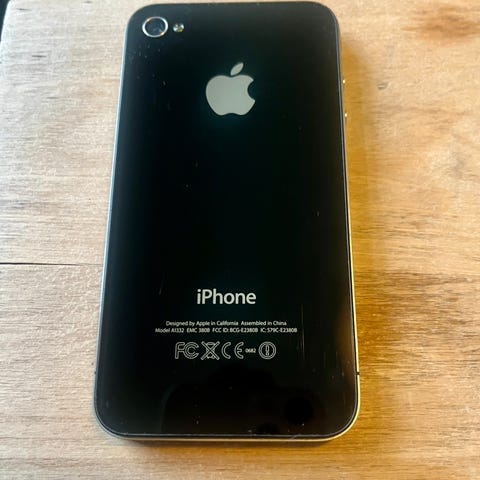 IPhone 4 med lader. Se bilder