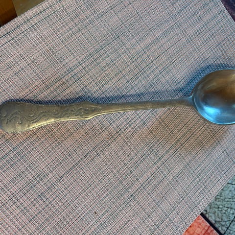 Fin tinnskei med trykt merke «støypt tinn» og «Askvoll brug» selges.