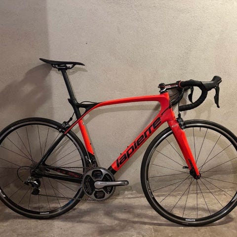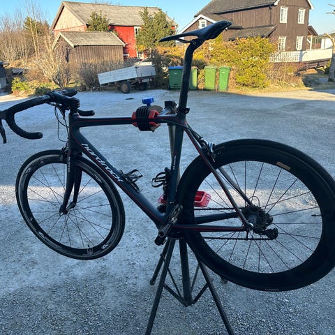 Helt rååå sykkel og en feilfri følgesvenn. Fullt Dura Ace oppsett. Hele drivlinjen med komplett krank, kjede og kassett er byttet 20/9-25. Ekstra knapper på styret der du girer med tommeltottene. Spurteknapper. Finner du lettere sykkel ?.. oppgradert med Dura Ace hjulsett fra standardsykkelen. Selges uten pedaler. Totalvekt i dag inkl pedaler og flaskeholdere 7,1 kg. Leveres med 2 hjulsett. 22 gir / 11kasett