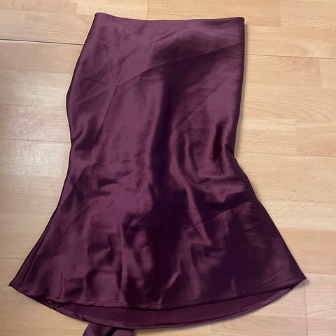 Nydelig vinrød farge knelang stretch skjørt med lapp på selges billig.