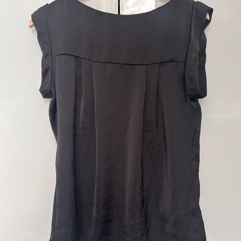 Meget pent brukt hvit, ermeløs topp fra Benetton. Blått mønster på forsiden. Stoff foran i chiffon og jersey bak. Ingen hull eller flekker.