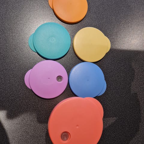 Selger 2 lokk til Rice melamin kopp høy for 30 kr stk. 2 lilla.