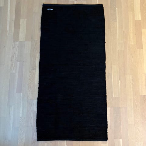 Flott gulvteppe av resirkulert bomull som måler 65 x 135 cm - passer f.eks. perfekt ved sofaen eller ved siden av senga! Den er brukt i en måned og er blitt vasket. Selges fordi den ikke passet inn allikevel.