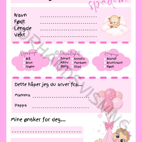 Dåp dåpspynt selskapslek quiz dåpsgave redigerbar dåpslek dåpsark konfirmasjonsark spådommer spådom spådomsspill spådomslek fremtidslek