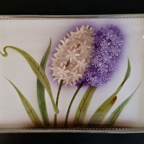 Lengden er 37cm. Bredden er 18cm. Det er dessverre gått av et lite nagg - se på bildet