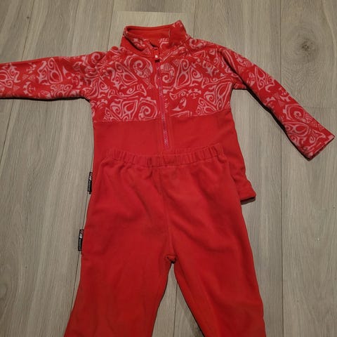 Ubrukt fleecesett fra Skogstad str 98 / 3 år. Glidelås på jakke med høy krage. Matchende bukse. Perfekt som mellomlag i barnehagen.