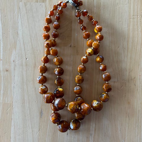 Håndlaget rav halskjede. Lengde 50 cm, 54 cm og 56 cm.