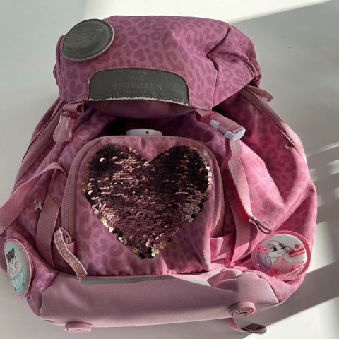 Pent brukt skolesekk. Ingen slitasje. Med regntrekk og pennal i samme design.